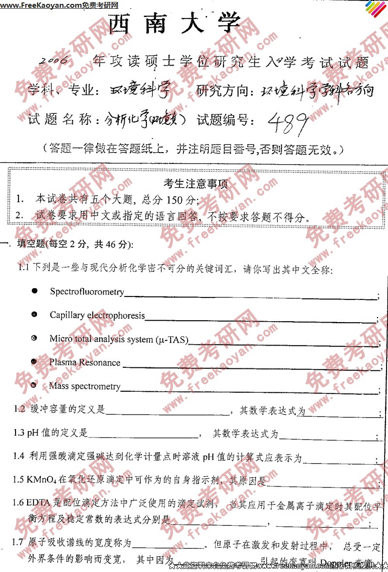 相关话题/西南大学 半岛在线注册真题 分析化学