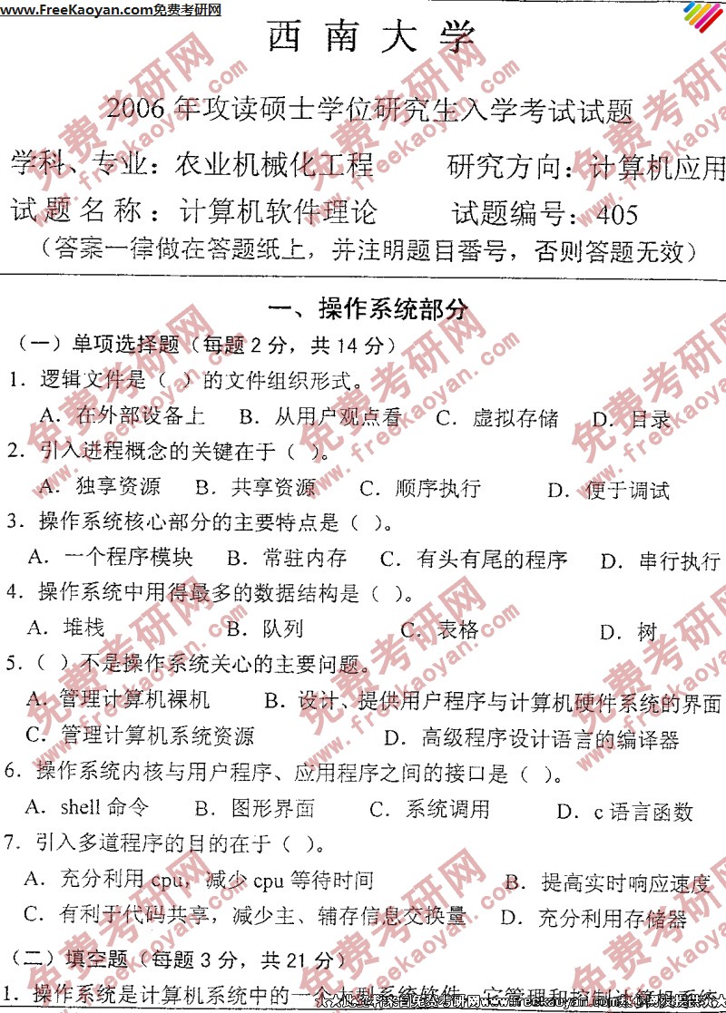 西南大学2006年半岛在线注册真题-计算机软件理论