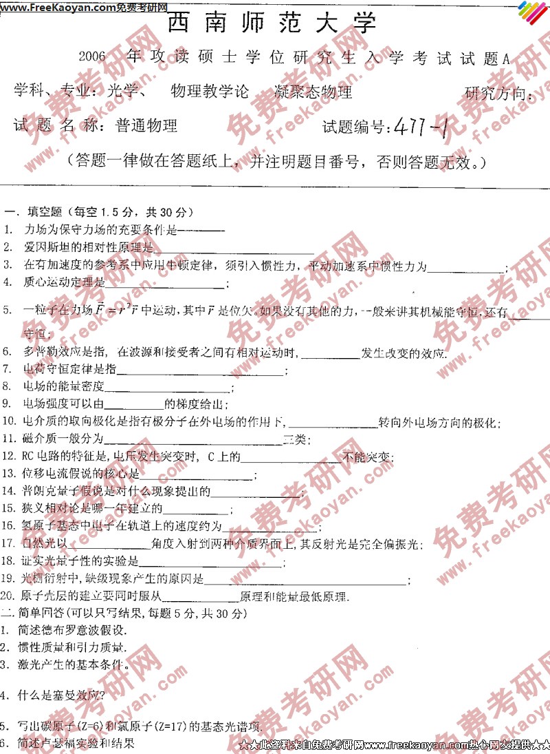 相关话题/西南大学 半岛在线注册真题 普通物理