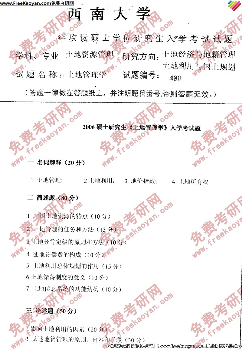 相关话题/半岛在线注册真题 西南大学 管理学 土地