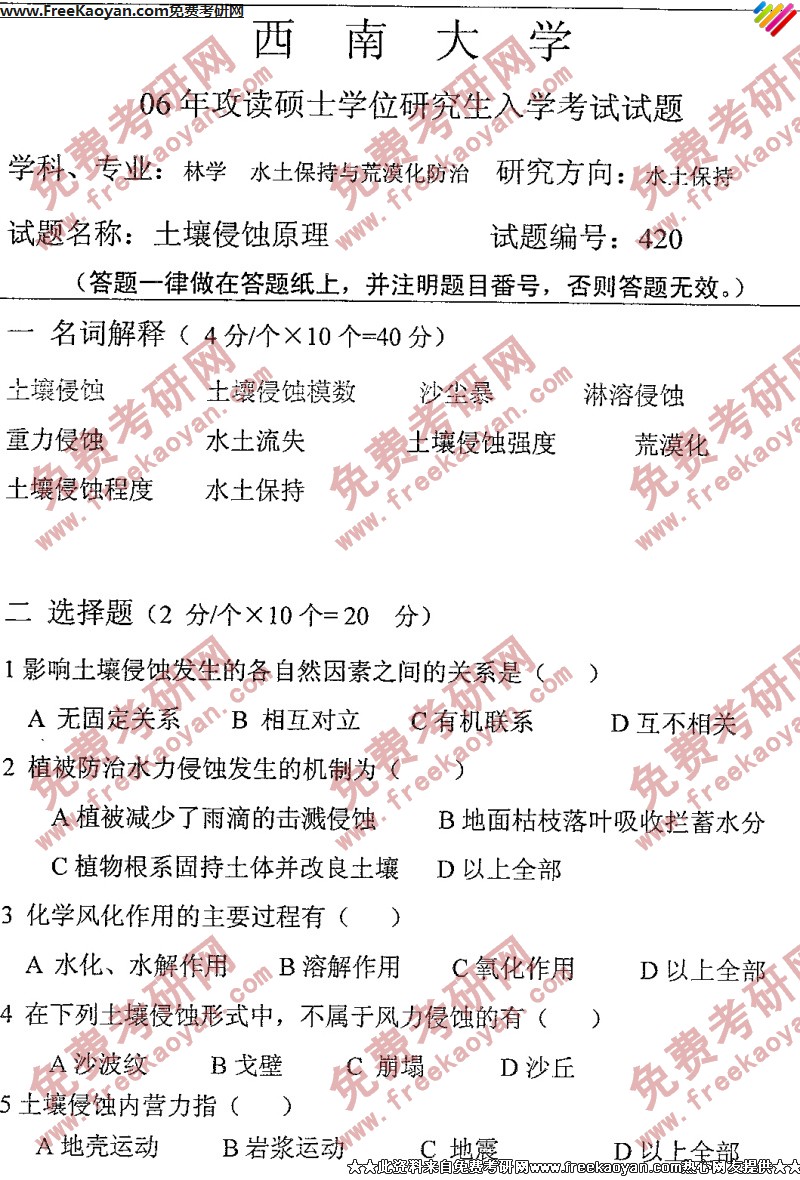西南大学2006年半岛在线注册真题-土壤侵蚀原理