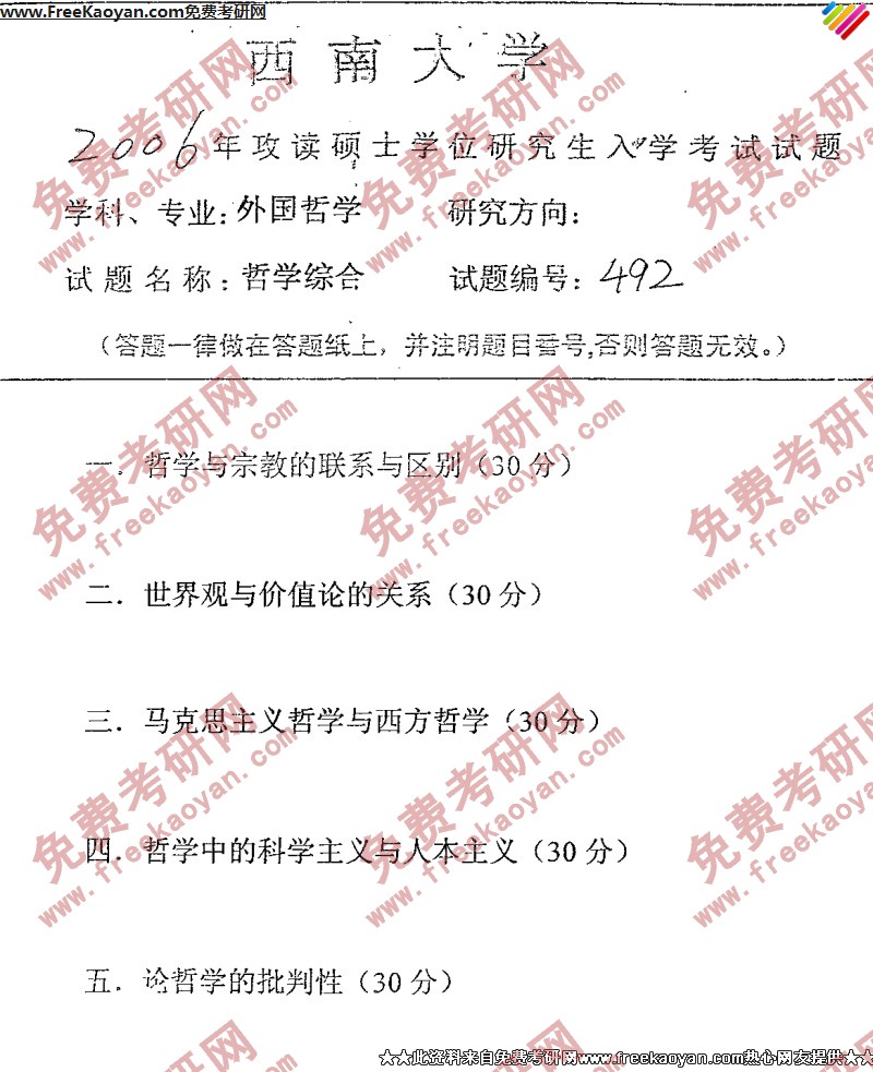 相关话题/半岛在线注册真题 西南大学 综合 哲学