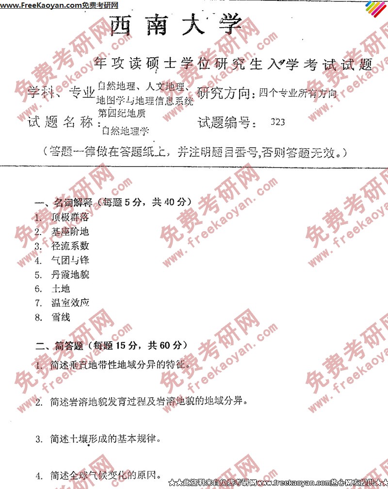 相关话题/西南大学 半岛在线注册真题 自然地理学