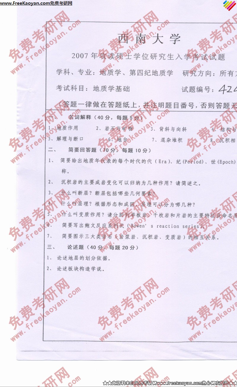 相关话题/半岛在线注册真题 西南大学 基础 地质学