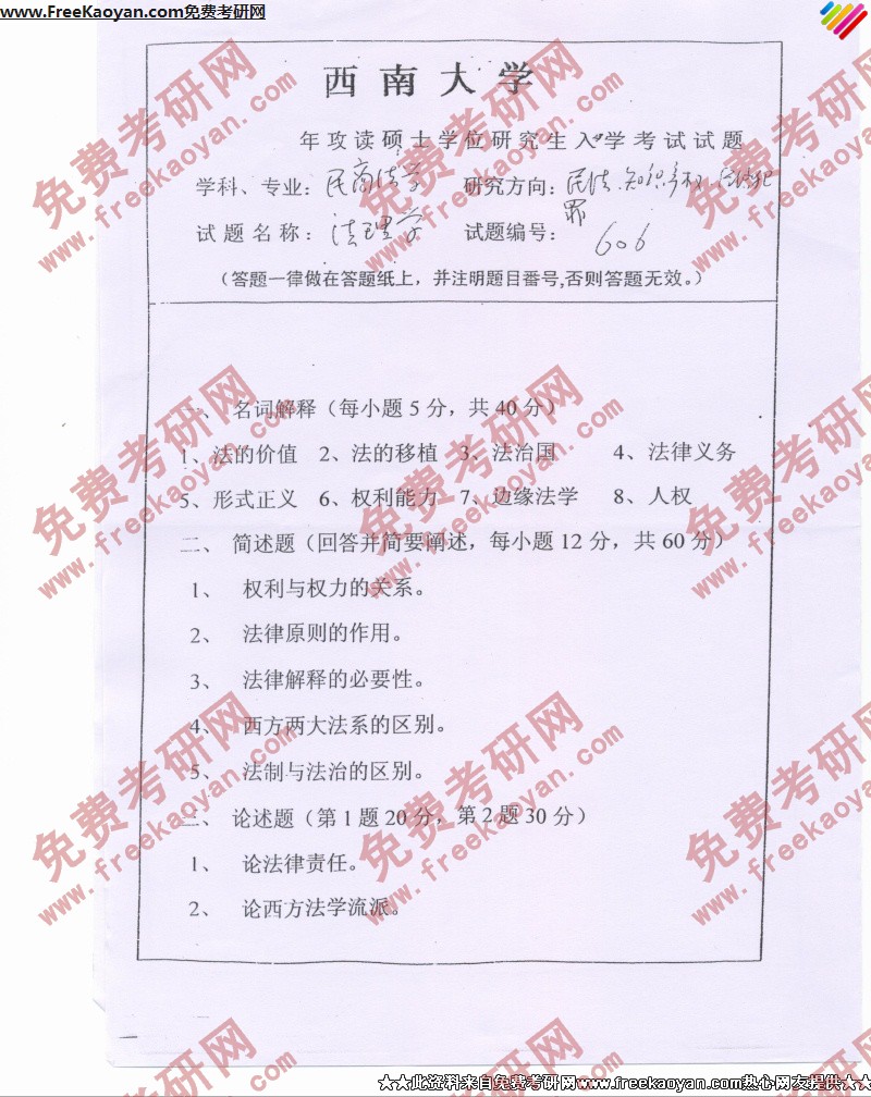 专业课半岛在线注册经验 本站小编 FreeKaoyan 2018-01-23西南大学2006年半岛在线注册真题-综合课
