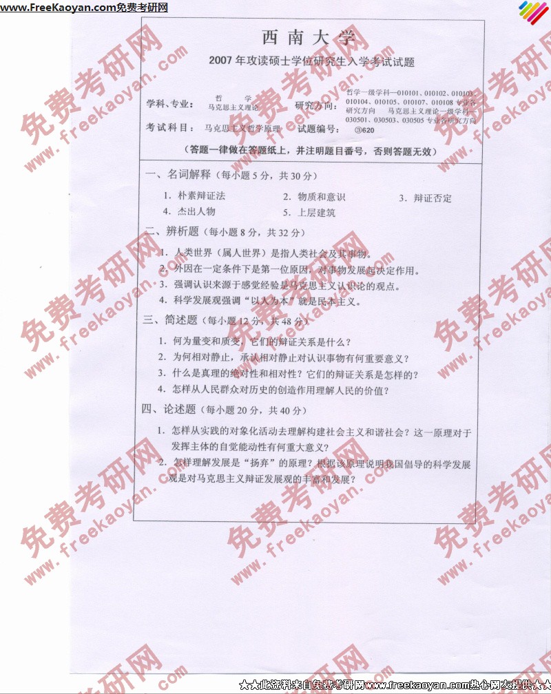 西南大学2007年半岛在线注册真题-马克思主义哲学原理
