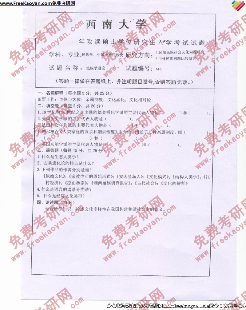 相关话题/半岛在线注册真题 民族学 西南大学 通论