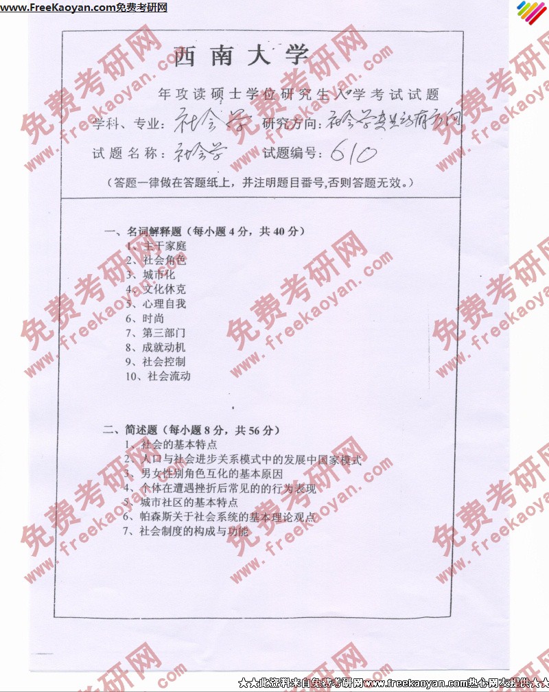 专业课半岛在线注册经验 本站小编 FreeKaoyan 2018-01-23西南大学2007年半岛在线注册真题-社会心理学