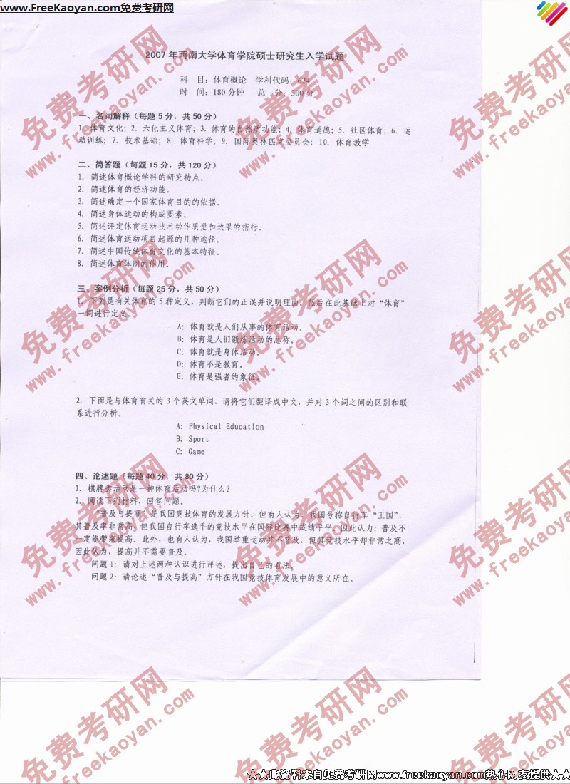 专业课半岛在线注册经验 本站小编 FreeKaoyan 2018-01-23西南大学2007年半岛在线注册真题-社会学