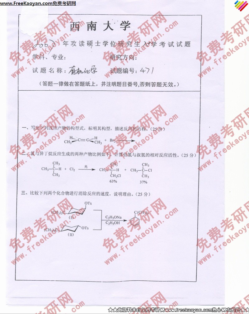 相关话题/西南大学 半岛在线注册真题 有机化学