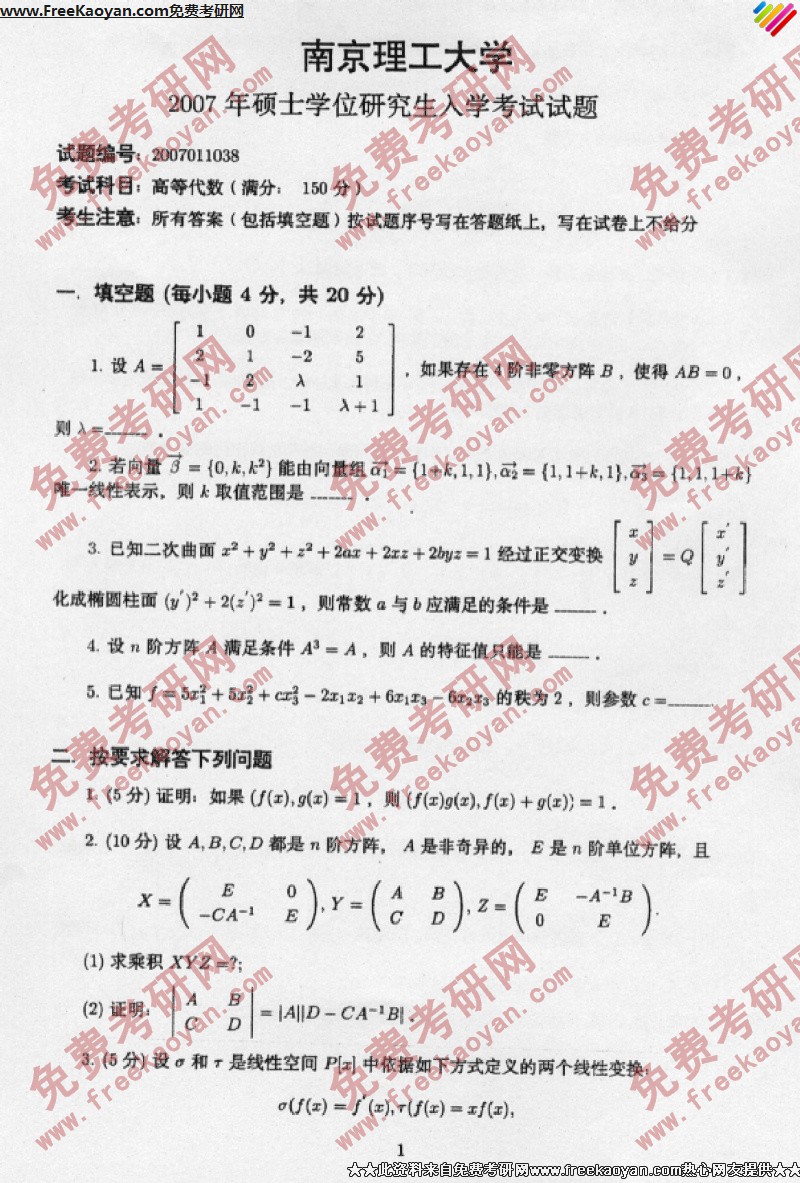 相关话题/南京理工大学 半岛在线注册真题 高等代数