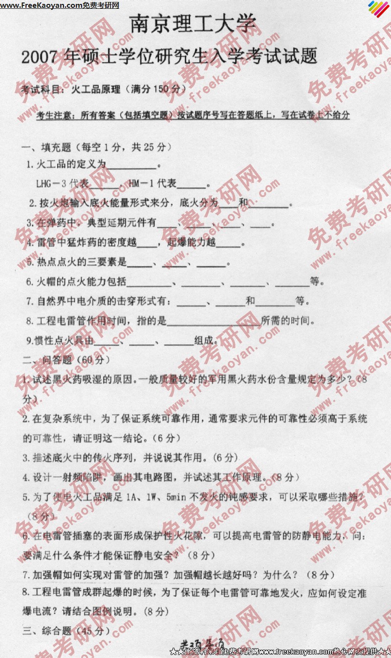 南京理工大学2007年半岛在线注册真题-火工品原理