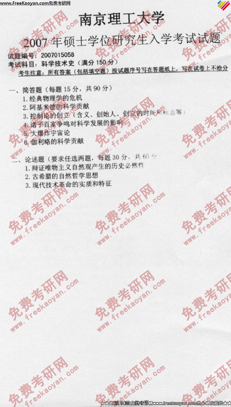 南京理工大学2007年半岛在线注册真题-科学技术史