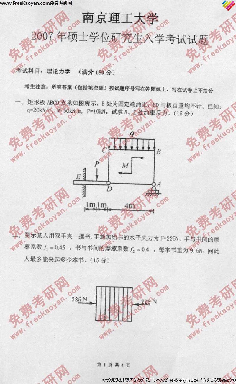 专业课半岛在线注册经验 本站小编 FreeKaoyan 2018-01-23南京理工大学2007年半岛在线注册真题-工程力学