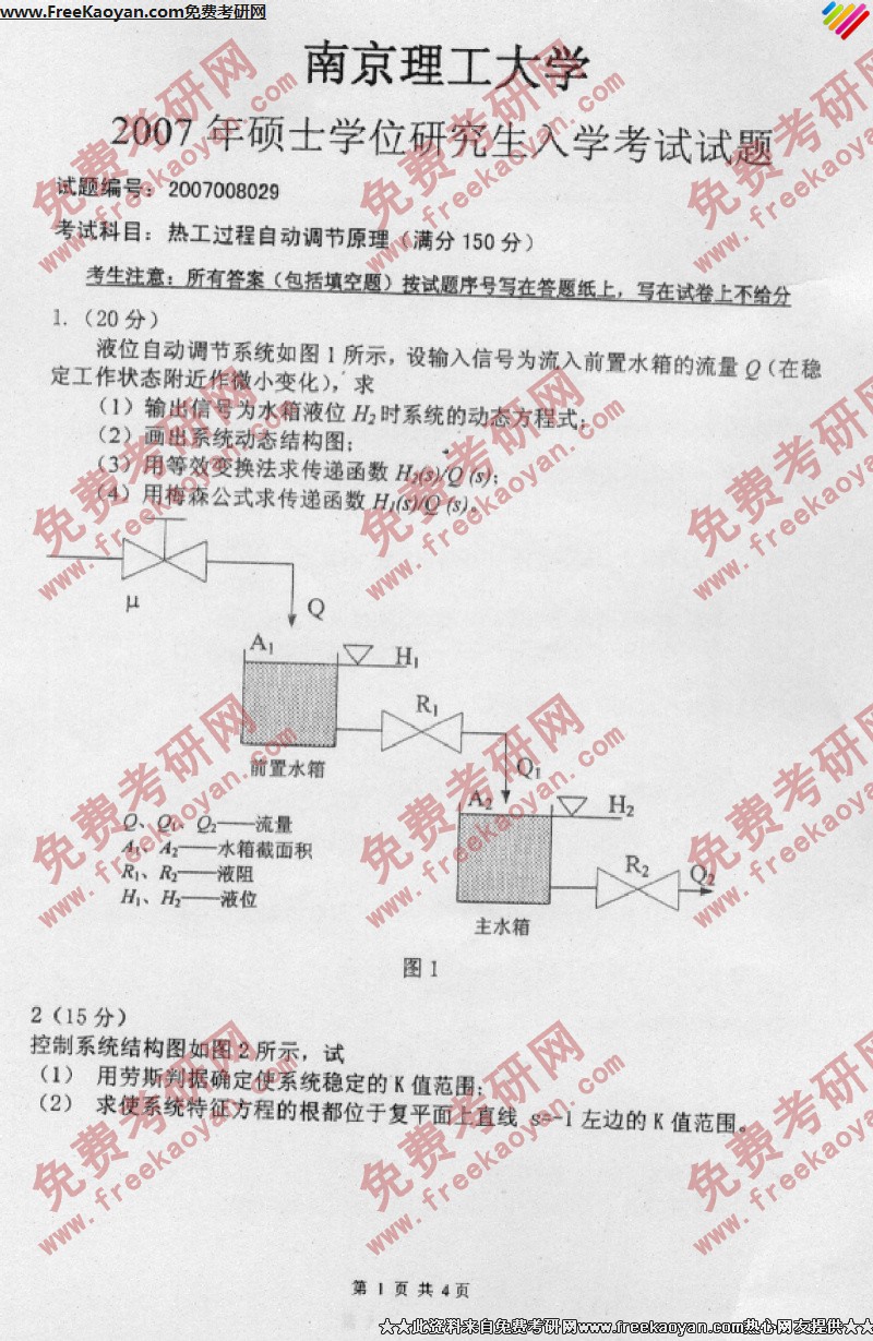 南京理工大学2007年半岛在线注册真题-热工过程自动调节原理