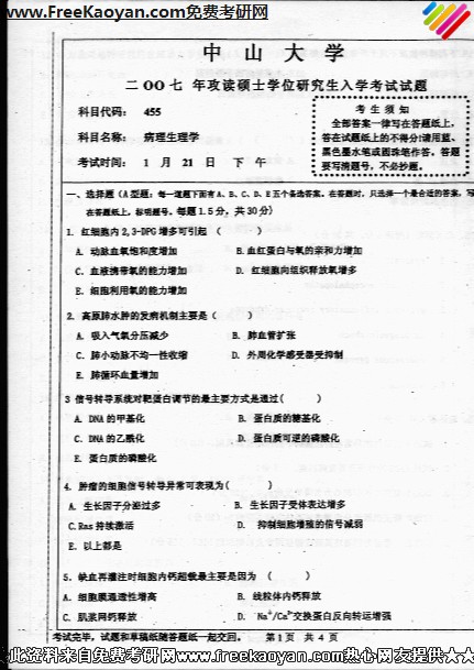 相关话题/中山大学 半岛在线注册真题 病理生理学