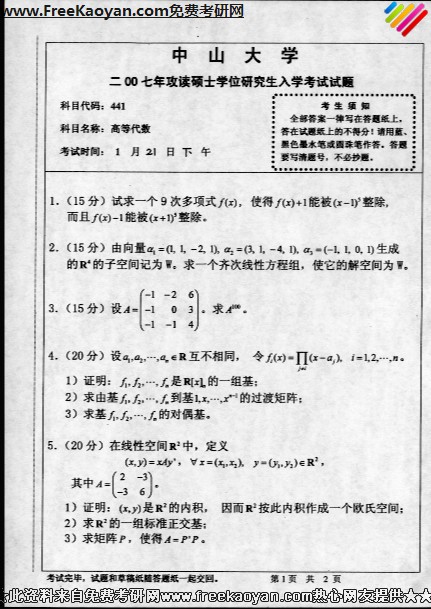 相关话题/中山大学 半岛在线注册真题 高等代数