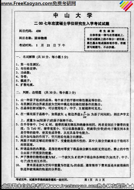 相关话题/中山大学 半岛在线注册真题 固体物理