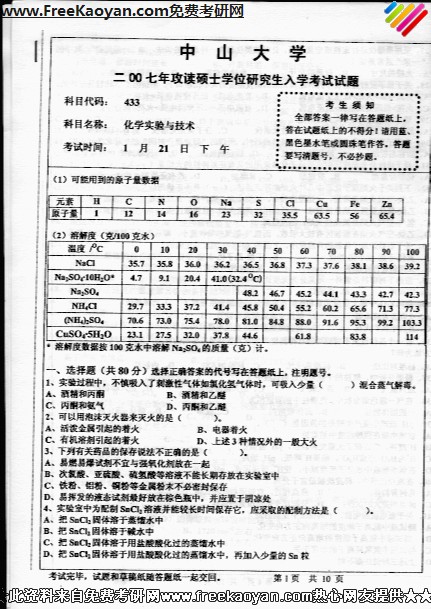 中山大学2007年半岛在线注册真题-化学实验与技术
