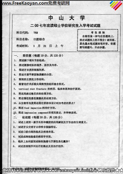 相关话题/中山大学 半岛在线注册真题 口腔综合