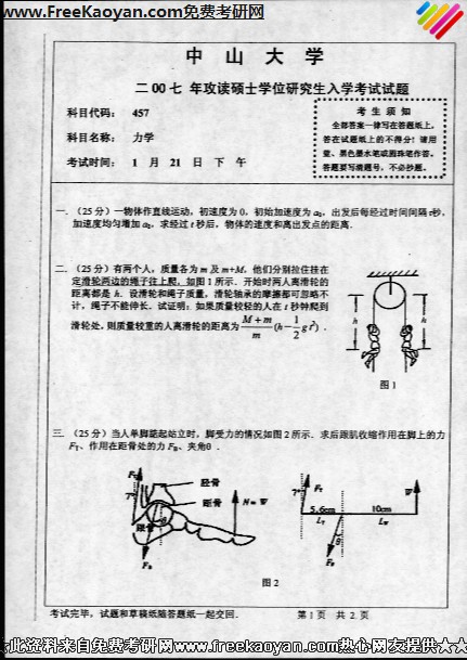 专业课半岛在线注册经验 本站小编 FreeKaoyan 2018-01-23中山大学2007年半岛在线注册真题-理论力学