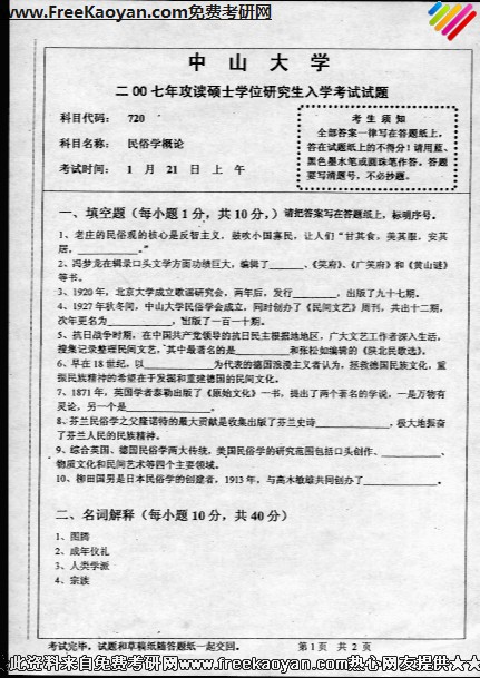 专业课半岛在线注册经验 本站小编 FreeKaoyan 2018-01-23中山大学2007年半岛在线注册真题-民间文学概论