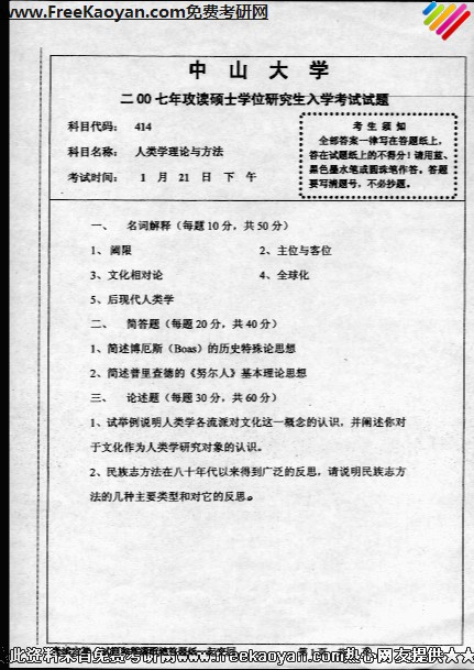 中山大学2007年半岛在线注册真题-人类学理论与方法