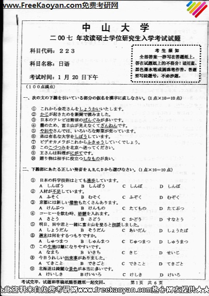 专业课半岛在线注册经验 本站小编 FreeKaoyan 2018-01-23中山大学2007年半岛在线注册真题-口腔综合