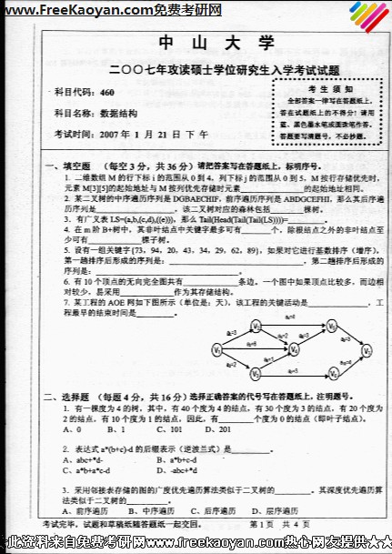 专业课半岛在线注册经验 本站小编 FreeKaoyan 2018-01-23中山大学2007年半岛在线注册真题-数据结构