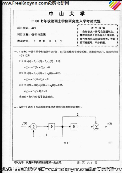 中山大学2007年半岛在线注册真题-信号与系统
