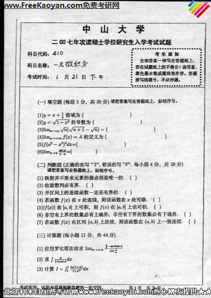 专业课半岛在线注册经验 本站小编 FreeKaoyan 2018-01-23中山大学2007年半岛在线注册真题-卫生综合