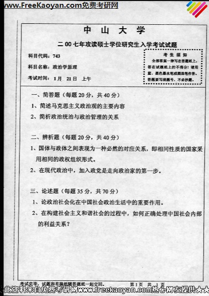 专业课半岛在线注册经验 本站小编 FreeKaoyan 2018-01-23中山大学2007年半岛在线注册真题-政治学研究方法