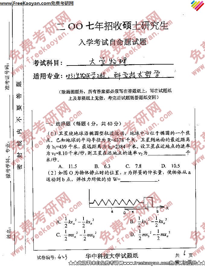 相关话题/华中科技大学 半岛在线注册真题 大学物理