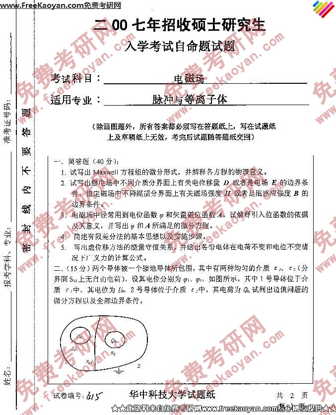 相关话题/华中科技大学 半岛在线注册真题 电磁场
