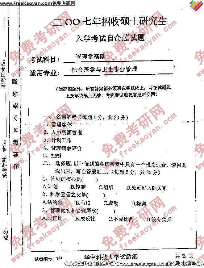专业课半岛在线注册经验 本站小编 FreeKaoyan 2018-01-23华中科技大学2007年半岛在线注册真题-管理学