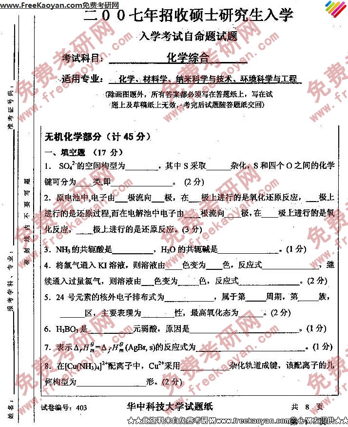 相关话题/半岛在线注册真题 华中科技大学 综合 化学