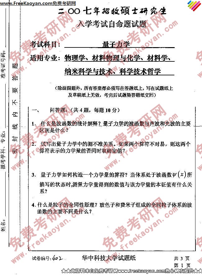 相关话题/华中科技大学 半岛在线注册真题 量子力学