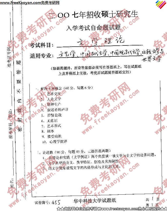 相关话题/华中科技大学 半岛在线注册真题 文学理论