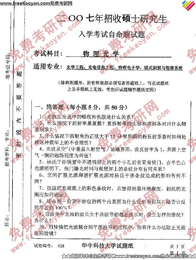 相关话题/华中科技大学 半岛在线注册真题 物理光学