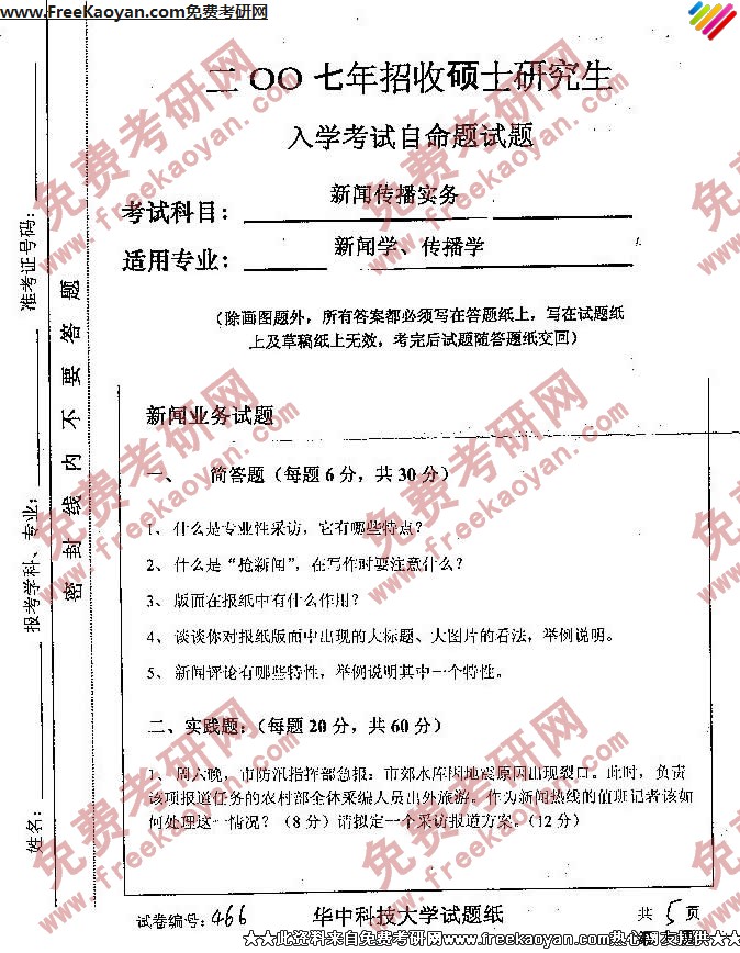 相关话题/半岛在线注册真题 新闻传播 华中科技大学 实务