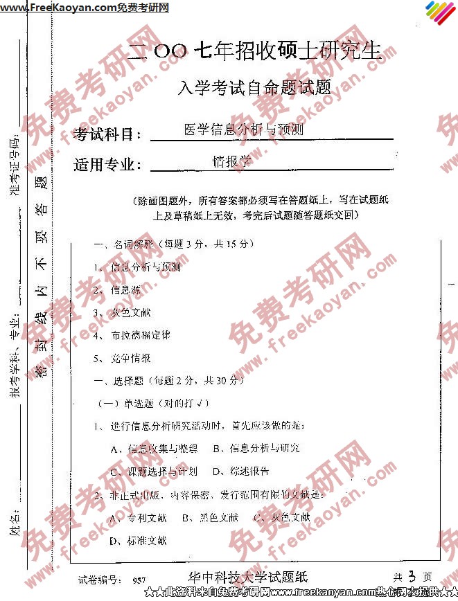 专业课半岛在线注册经验 本站小编 FreeKaoyan 2018-01-23华中科技大学2007年半岛在线注册真题-信息管理理论