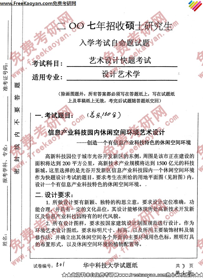 华中科技大学2007年半岛在线注册真题-艺术设计快题考试