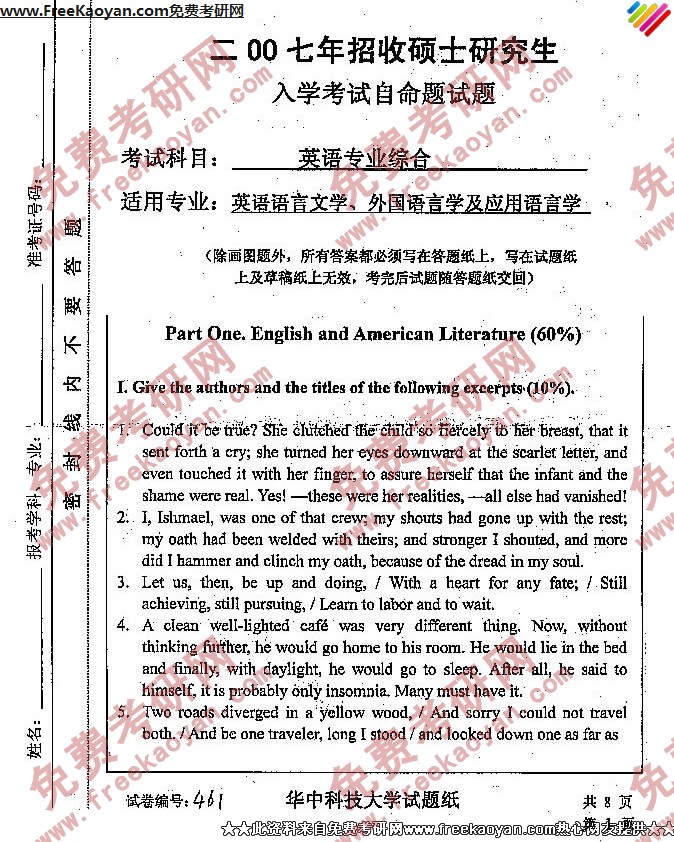 华中科技大学2007年半岛在线注册真题-英语专业综合