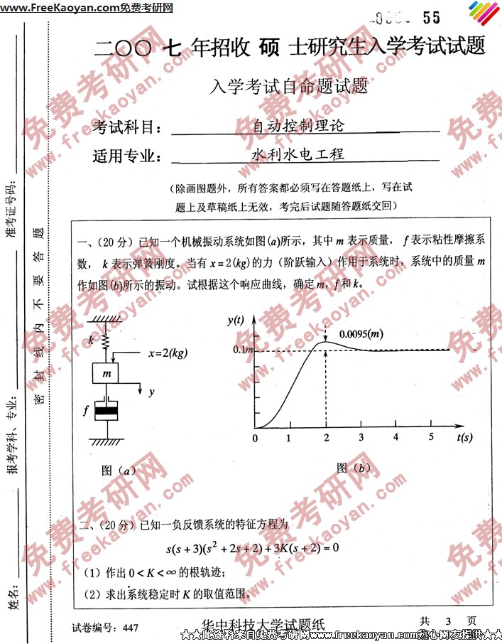 专业课半岛在线注册经验 本站小编 FreeKaoyan 2018-01-23华中科技大学2007年半岛在线注册真题-信号与线性系统