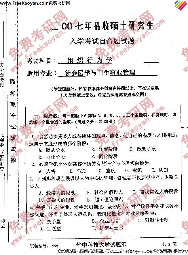 相关话题/半岛在线注册真题 组织 华中科技大学 行为学