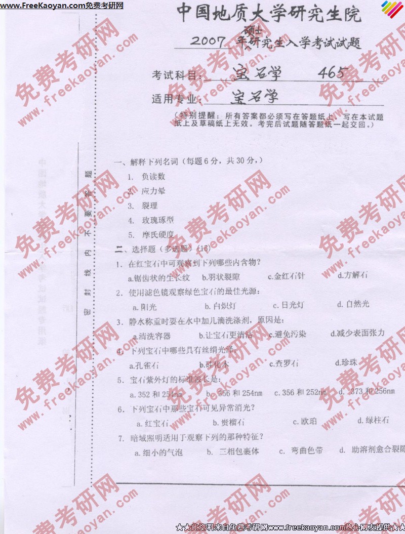 中国地质大学(武汉)2007年半岛在线注册真题-宝石学