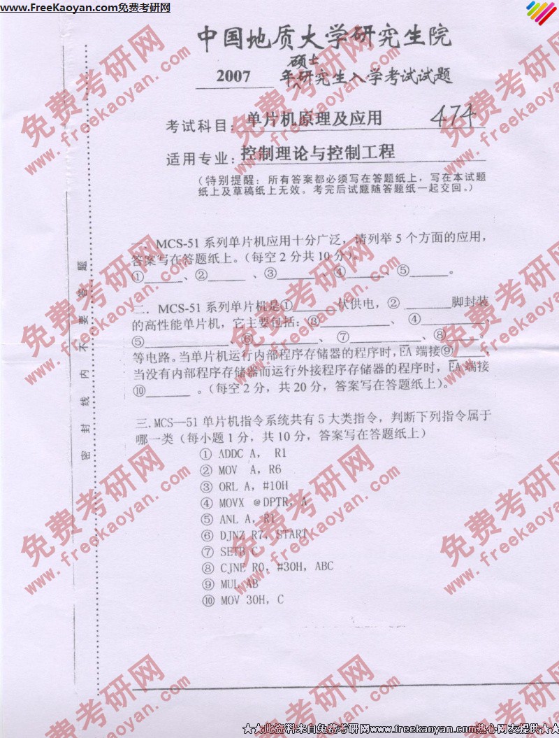 中国地质大学(武汉)2007年半岛在线注册真题-单片机原理及应用