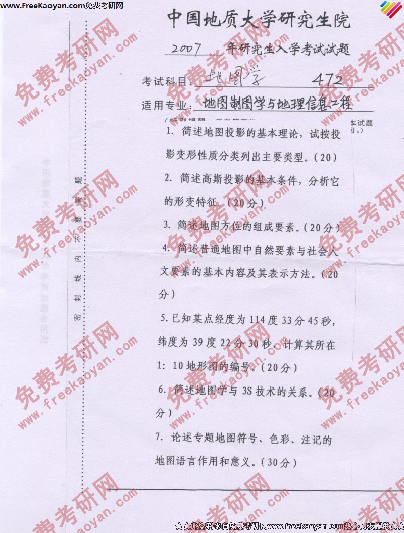 中国地质大学(武汉)2007年半岛在线注册真题-地图学