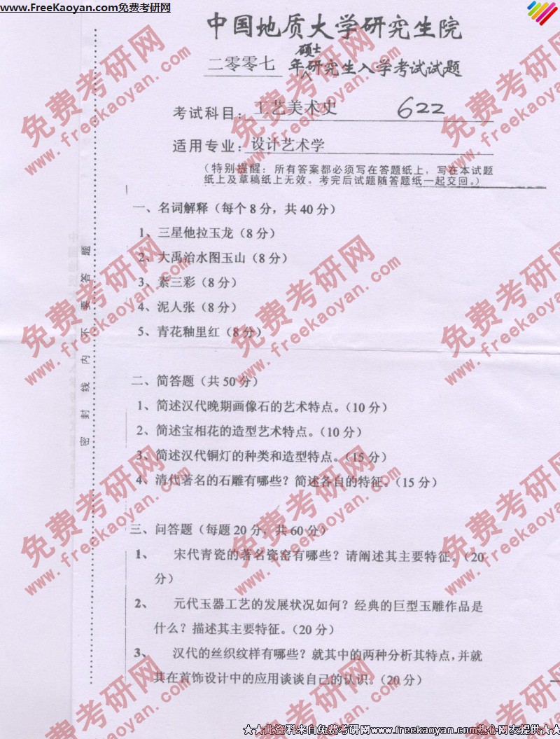 中国地质大学(武汉)2007年半岛在线注册真题-工艺美术史