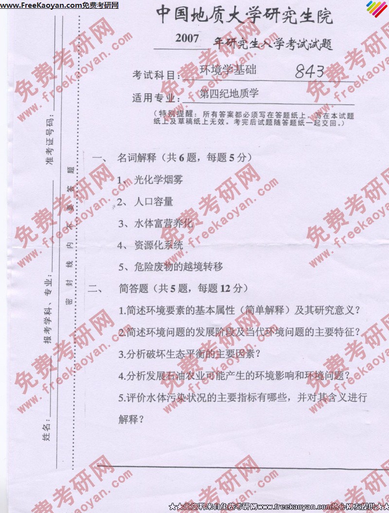 专业课半岛在线注册经验 本站小编 FreeKaoyan 2018-01-23中国地质大学(武汉)2007年半岛在线注册真题-环境地质学